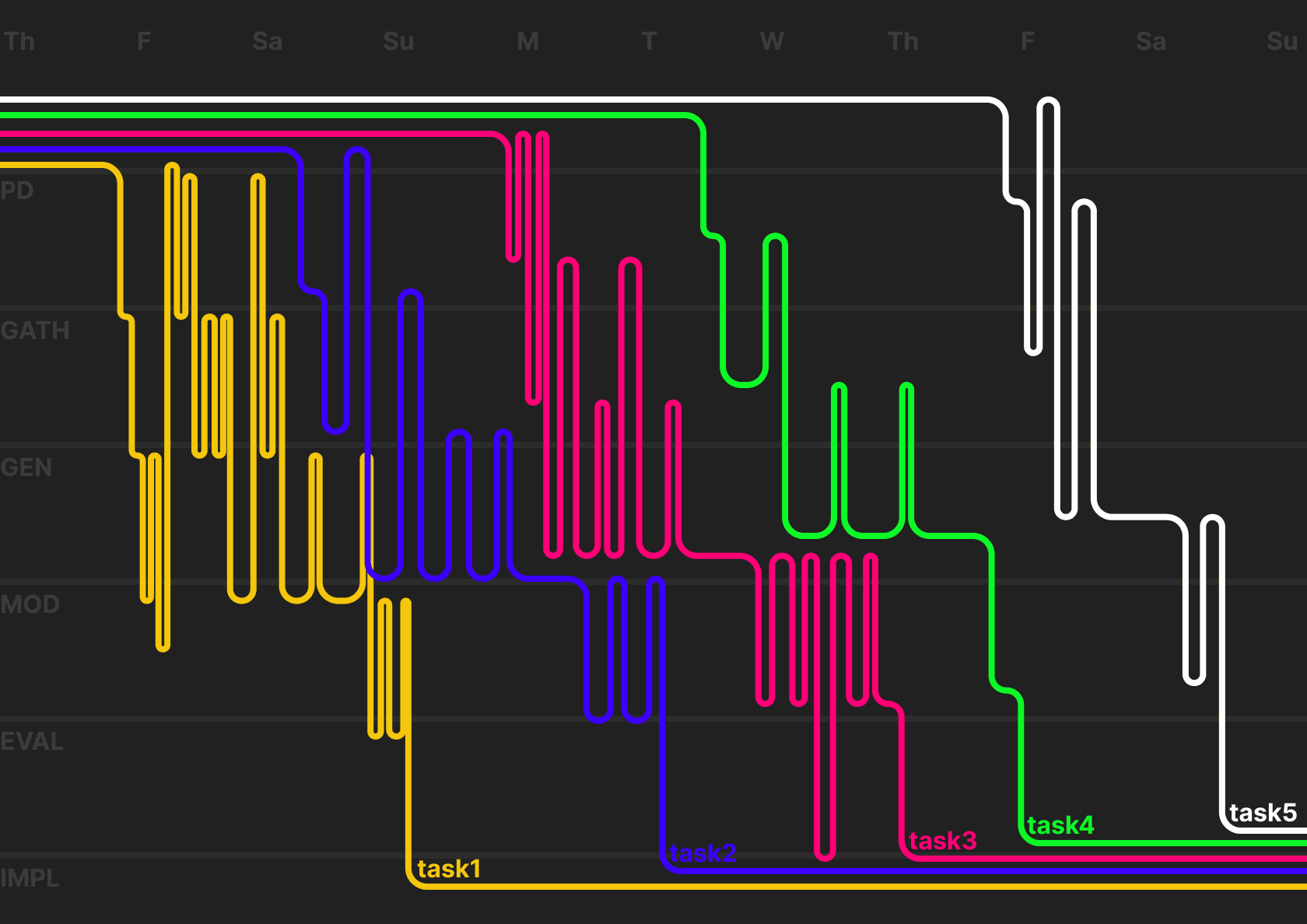 This postcard evaluates how somebody carries multiple processes in a span of time. We engage in multiple processes and we are at different stage of each process. We might be kick-starting a process while we might be in the evaluation stage of another. We are constantly engaged in different processes and being cognizant of what stage of a particular process can help you approach it more thoughtfully.