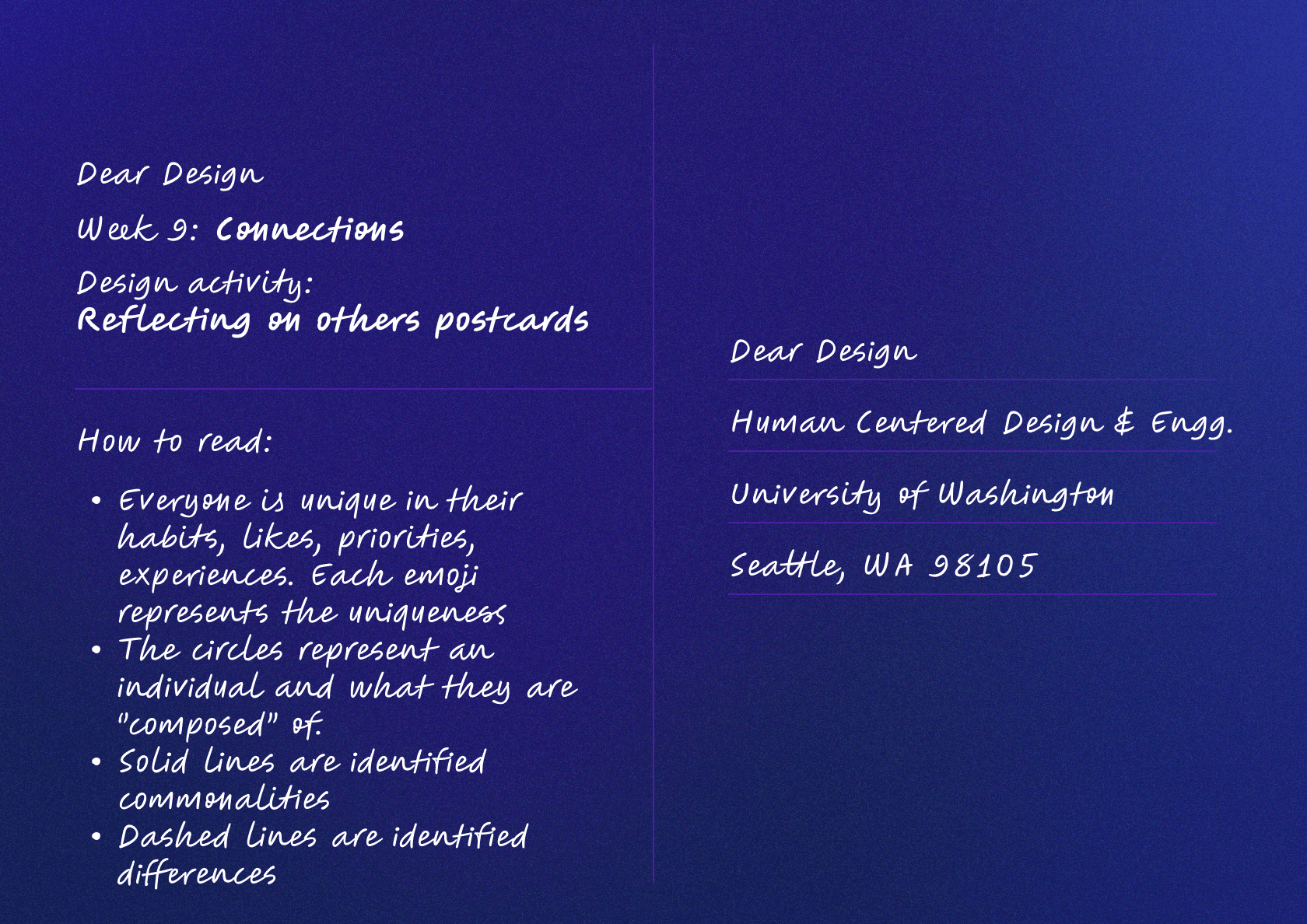 These postcards have been curated from the work I created for the Design Process Resilience coursework under the guidance of Professor Cindy Atman at the University of Washington.